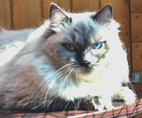 Gray colour on the points or extremities of the cat: face, ears, legs, feet and tail. Available in all patterns: colourpoint, mitted, bicolour and lynx.