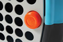The body is made of polypropylene, with a rubber handle for comfort. Also features an aluminum door & a built in safety belt attachment.